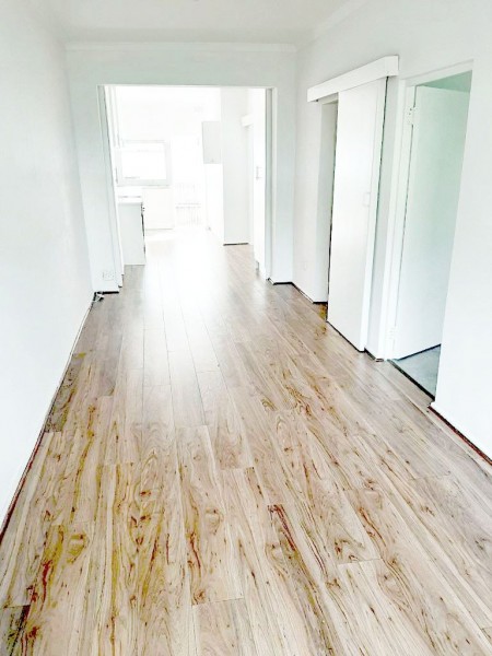 carpeted 2nd bedroom with wall heater & vinyl floor in the front,