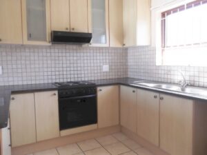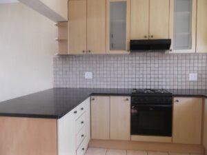 semi open-plan, modern fitted kitchen with stove & plumbing point,
